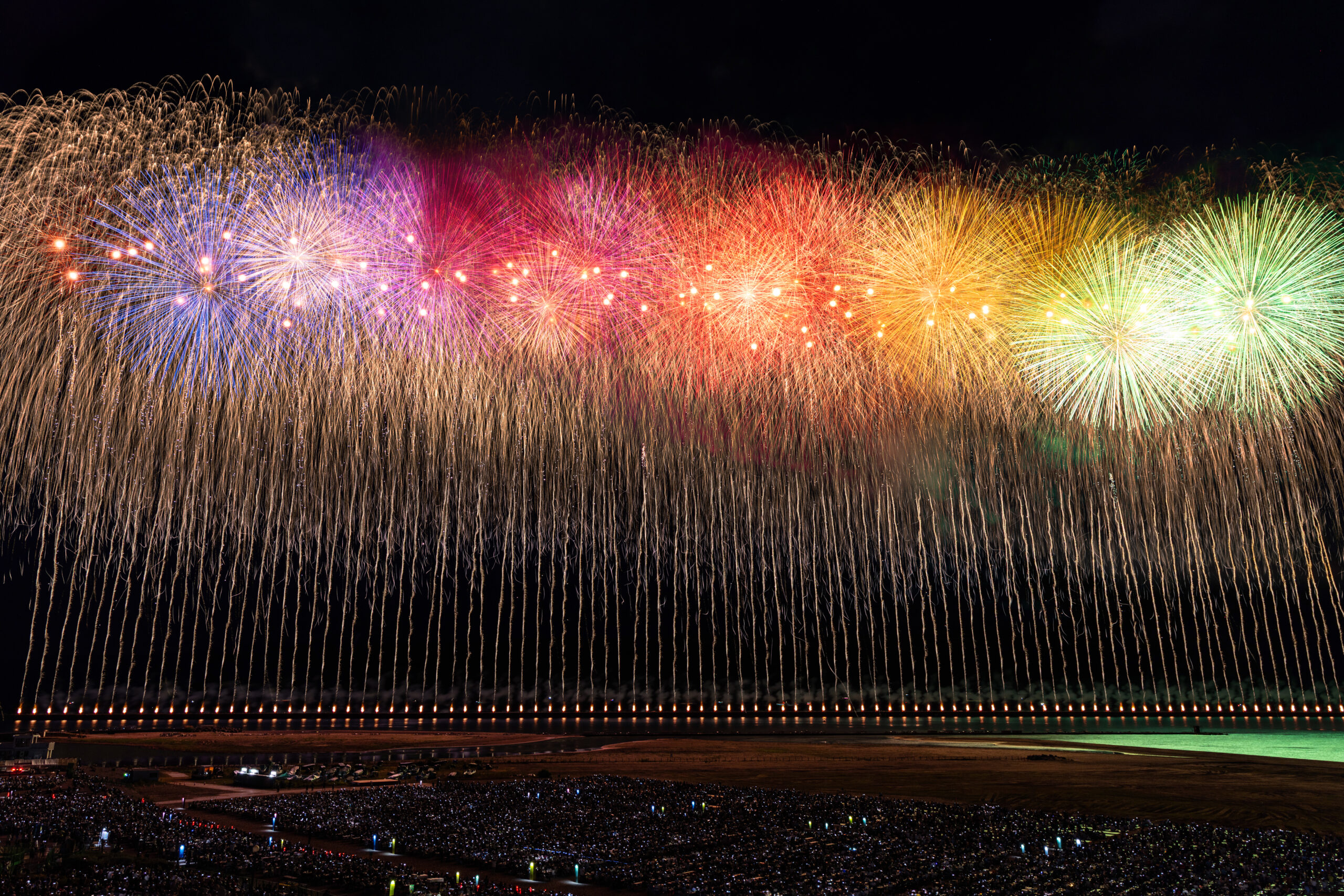 日本三大海上花火の一つに数えられる柏崎の花火。波打ち際から打ち上がる1万発以上の光が、夜空と海面を鮮やかに染め上げます。4日間、街の一員として過ごした旅の締めくくりに仰ぐ花火は、きっと一生の宝物になるはずです。