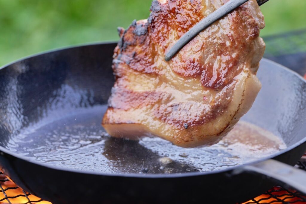 一日の締めくくりは、完成したばかりの「マイ・フライパン」を用いたアウトドアBBQです。自ら叩き、鍛え上げた鉄板が食材にじっくりと熱を伝え、香ばしい音を立てる。その瞬間、この地で育まれた鍛冶の誇りが、確かな手応えとなって心を満たします。