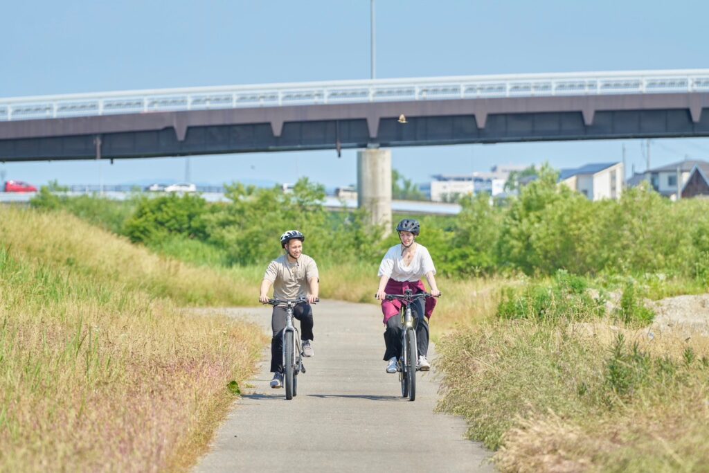 製作の合間には、E-bike(電動アシスト自転車)に乗り、燕三条の街へと漕ぎ出します。ガイドの案内で訪れるのは、地域の暮らしと記憶が息づくローカルスポット。